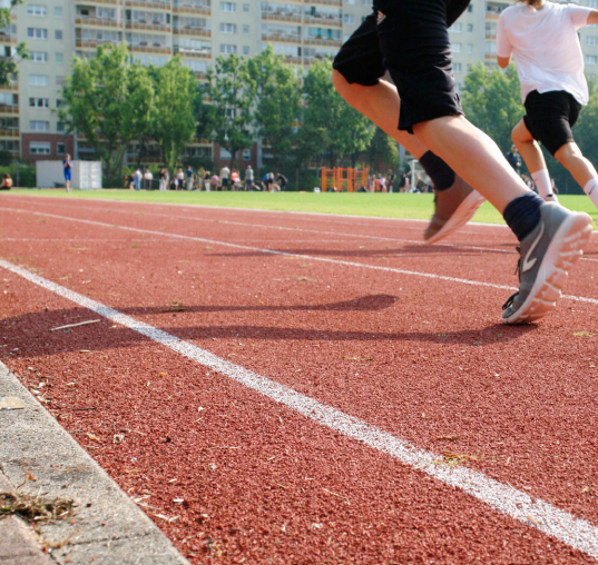 Als Einstieg starteten unsere Siebt- und Neunklässler und stellten sich den Kategorien Weitsprung, Sprint und Weitwurf. Im hohen Bogen flogen die Bälle über den Platz und streiften den grünen Rasen über weite Strecken. Im Weitsprung erklommen sie die Lüfte, bis ihre Schuhe mit Sand gefüllt waren und sie daraus hätten Sandburgen bauen können. Minimalistische Sekunden spiegelten die Dauer der einzelnen Sprints wider. Alle Schüler und Schülerinnen bewiesen ihr Können.