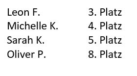 Zu den weiteren erfolgreichen Teilnehmern unserer Schulmannschaft gehörten: